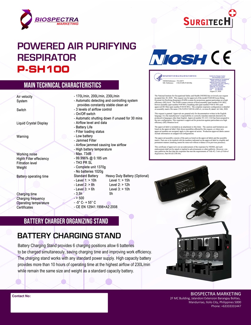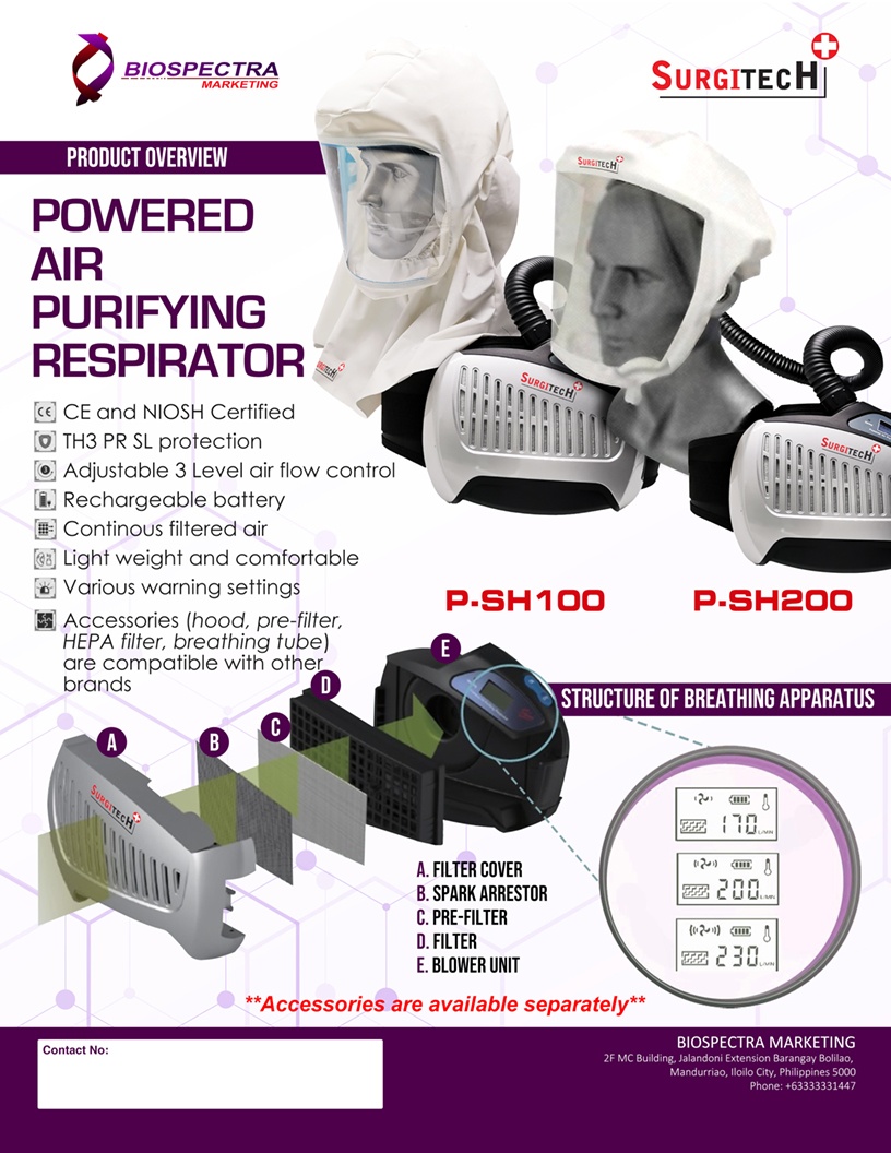 - Accessories (hood, pre-filter, HEPA filter, breathing tube) are compatible with other brands